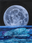 This is an acrylic and acrylic collage painting. The moon rises from the sea in a futuristic vision of the island of Roatan. The original is 30" x 40"...[+]