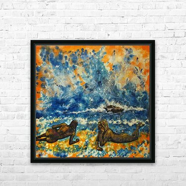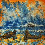 Pumpkin Beach is an original acrylic painting of two nude women made of sand enjoy laying on a mysterious beach. The original painting is also for sal...[+]