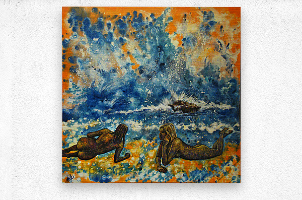 Pumpkin Beach is an original acrylic painting of two nude women made of sand enjoy laying on a mysterious beach. The original painting is also for sale on fineartsouth.net